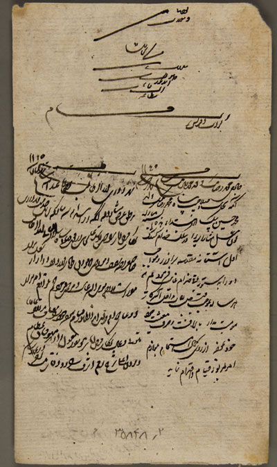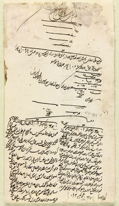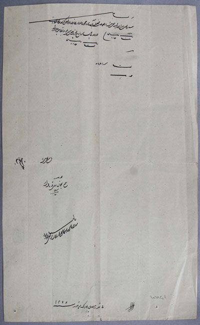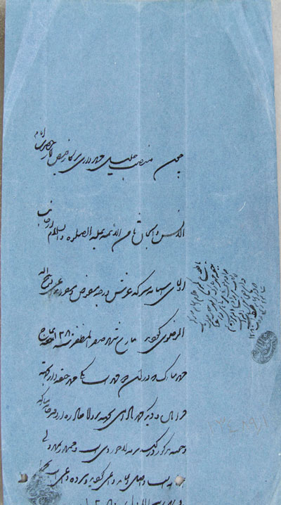 "مواجب هذه السنه جناب فخامت نصاب حاجی میرزا عبدالرضا عضد التولیه مهردار خاصه شریفه از قرار قبض معزی الیه که نزد جناب جلالت مآب میرزا ابوالقاسم ضابط اسناد ضبط است.