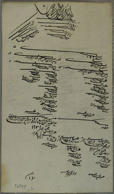 · سند شماره 1/35885 دفتر توجیهات و مقررات . صورت المذکور- صورت تصدیقات دریافت مواجب دریافت مواجب از قرار رقم مبارک مطاع به تاریخ شهر شعبان 1165.