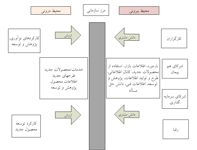نمودار شماره 1: دانش مشتری در محیطهای درونی، بیرونی و مرزهای سازمان (Jennex , 2008, p.209)