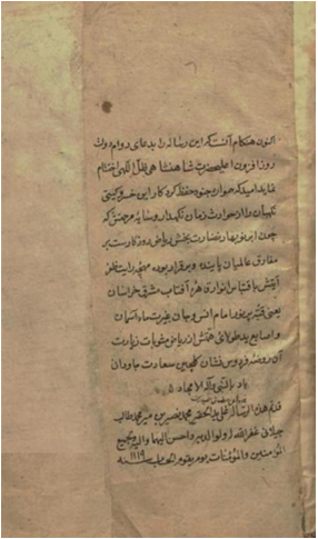 انجامه:قدتم هذهالرساله علی یدالحقیرمحمدنصیربنمیرمحمدطالبجیلانی غفرالله...یوم یقومالحساب سنه ۱۱۱۹