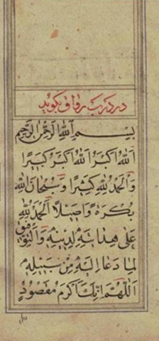 آغاز: بسمله... الله اکبر الله اکبر الله اکبر کبیرا و الحمد لله کثیر و سبحان الله بکرة...