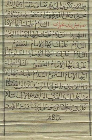 انجام: السلام علیک یا مولای و ابن مولای و رحمه الله برکاته