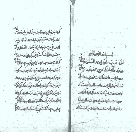 آغاز:بسمله.حمدله.. چون بعد از مجاورت متمادی بجهت اصلاح بدن بکرمانشاهان آمدم از قضای خداوندی اسباب ماندن فراهم آمد».