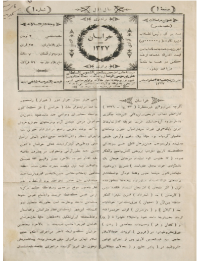 [4] . برای نمونه ر.ک.: روزنامه ادب خراسان سال اول، شماره اول، 4 رمضان 1318ق.