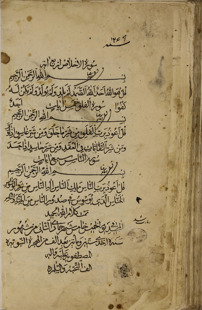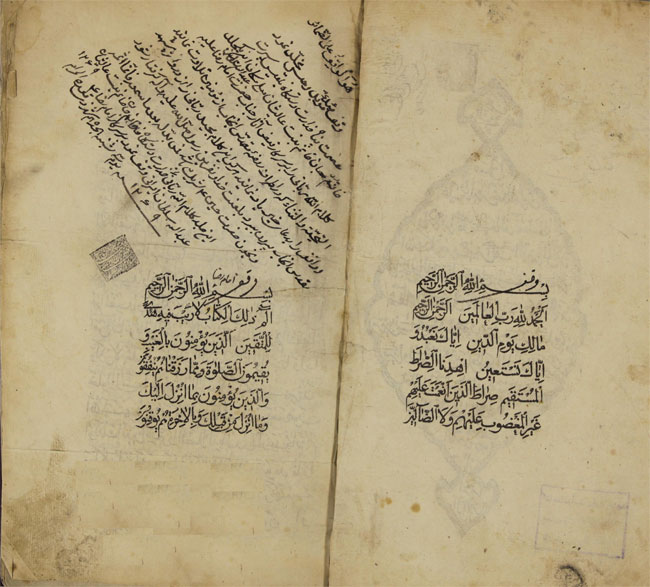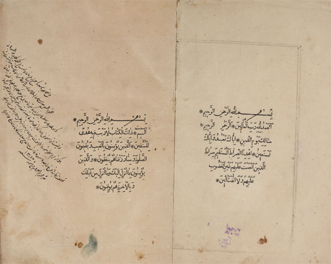 یادداشت: خط نسخ؛ جلد تیماج؛ کاغذ فرنگی نباتی؛ آرایش دو سوره اول و دوم دارای کتیبه، جدول کشی به تحریر لاجورد و سرخی و معلق به حواشی در ارتباط با سور و آیات به زبان فارسی