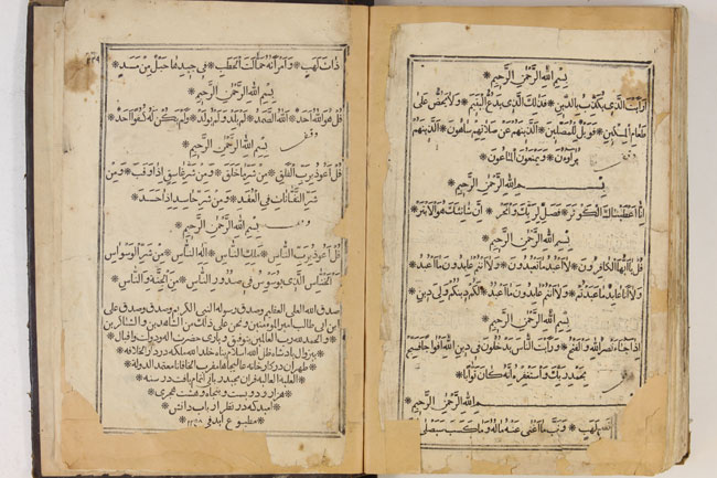 یادداشت: خط نسخ؛ جلد تیماج؛ کاغذ فرنگی نباتی؛ آرایش دو صفحه افتتاح مذهّب و منقش و دوحاشیه حاشیه اول گل و برگ، اسامی سور به خط ثلث با در میان کتیبه، جداول اوراق و کمند و تحریر، دارای سرلوح، کتیبهسازی در صدر و ذیل، جدولکشی مضاعف و کمنداندازی است.