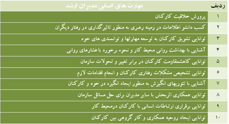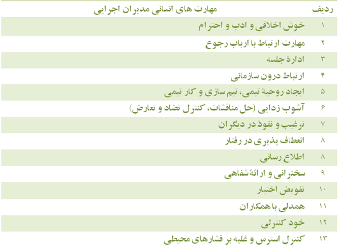 جدول 6. مهارت های انسانی مدیران اجرایی