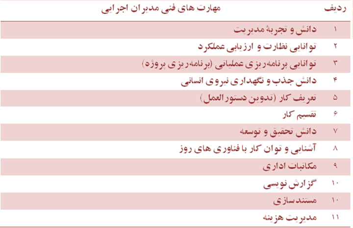 1- مدیران ارشد و اجرایی در انجام وظایف خود تا چه اندازه از مهارت های سه گانه فنی، ادراکی، انسانی برخوردارند؟