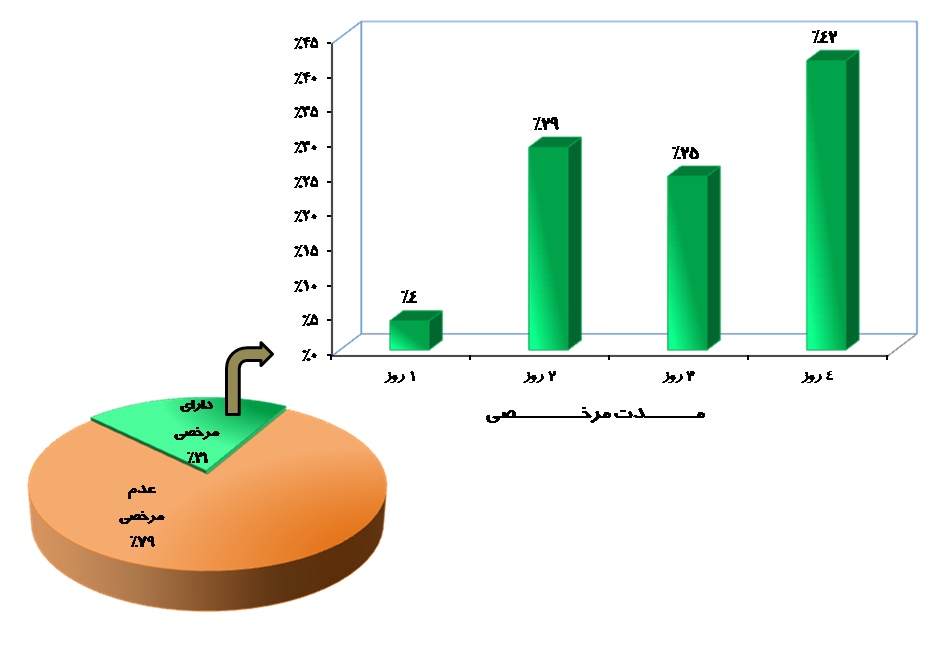 بیشترین میزان مرخصی به دلیل اختلالات اسکلتی- عضلانی به مرخصی 4 روز بوده که میزان قابل توجهی است.